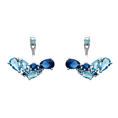 Mystigrey Oceana .925 Sterling Silver Plated Rhodium Jacket Earrings for Women Blue